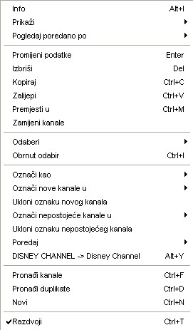 Glavni izbornik za listu kanala
