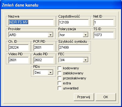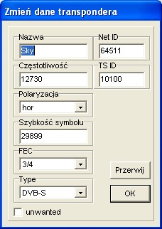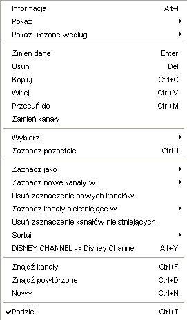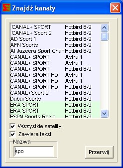 Okno główne, tutaj widzimy wszystkie satelity, transpondery, ulubione, i oczywiście kanały.