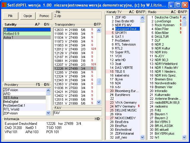 ... i konwertować z lub do innych formatów ustawień albo importować kanały bezpośrednio z obcych ustawień w Waszych ustawieniach.SetEditPFLMożna otworzyć kilka formatów ustawień jednocześnie.