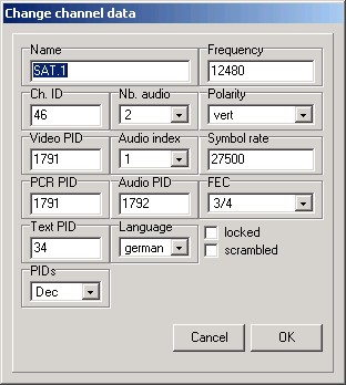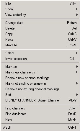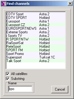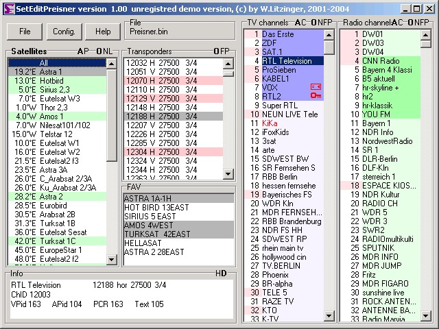 The main window, you see all satellites, transponders, favourites, and of course the channels.