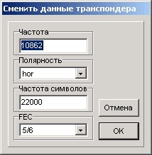 Вы можете изменить установки транспондера