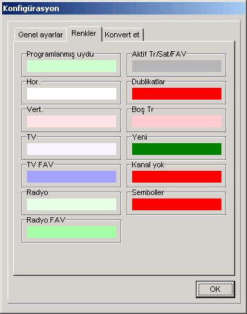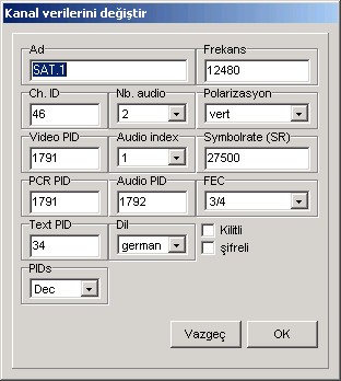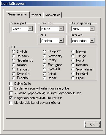 Burada menü dili, bağlantı yeri, PID'lerin ve kanal listesinin görüntüsü ayarlanır ve yabancı formatların importu için frekans toleransı verilir. Ayrıca burada SetEdit'in yazı ve ekran renklerini değiştirebilirsiniz.