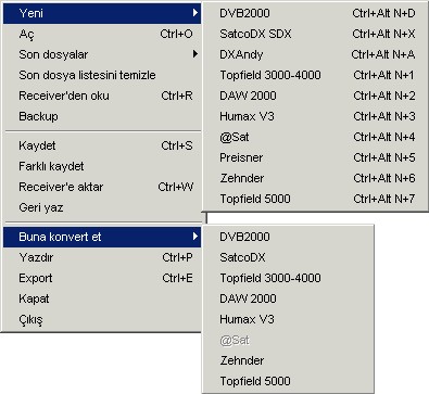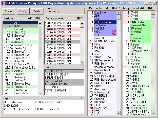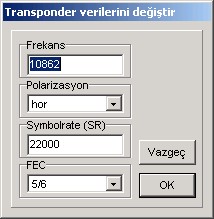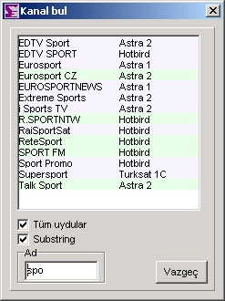 Ana pencere, burada tüm Uydular, Transponderler, Favoriler, görüyorsunuz ve tabiiki kanalları.