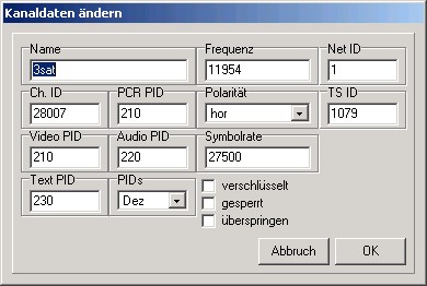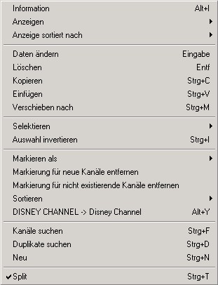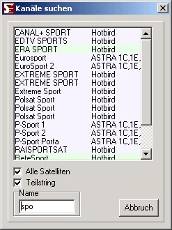Das Hauptfenster, hier sehen Sie alle Satelliten, Transponder, und natürlich die Kanäle.
