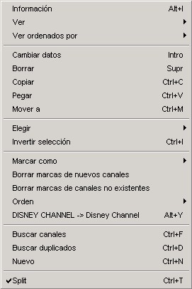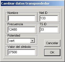 La ventana principal con la lista de satétites, Transpondedores, y los canales.