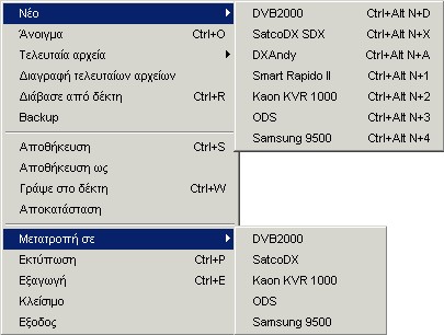 ...μετατροπή από και σε άλλες μορφές ρυθμίσεων (settings formats) ή απευθείας εισαγωγή καναλιών άλλων μορφών στις δικές σας ρυθμίσεις SetEditRapido2. Μπορείτε να επεξεργάζεστε ταυτόχρονα περισσότερες μορφές ρυθμίσεων.
