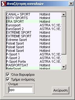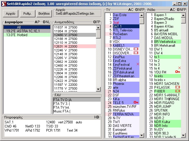 Το κυρίως παράθυρο, εδώ βρίσκονται: δορυφόροι, αναμεταδότες, και φυσικά τα κανάλια.