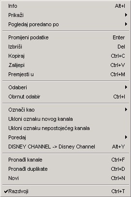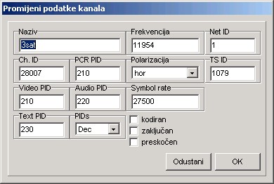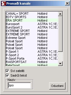 Glavni prozor, vidite sve satelite, transpondere, i svakako kanale