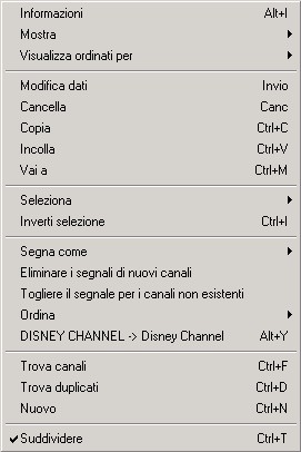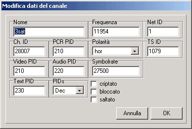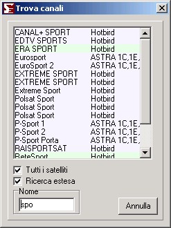 La finestra principale, vedi tutti i satellite, transponder, e naturalmente i canali.