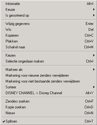 Het hoofmenu van de zenderlijst