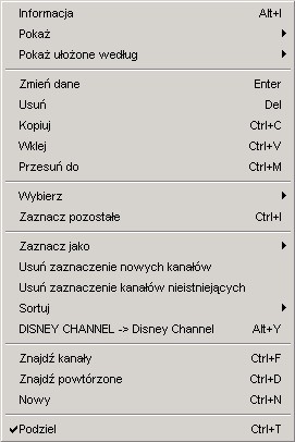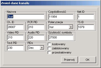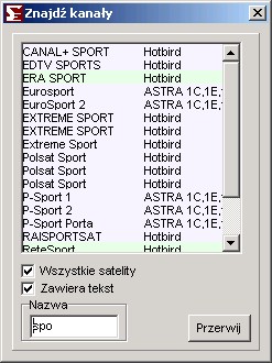 Okno główne, tutaj widzimy wszystkie satelity, transpondery, i oczywiście kanały.