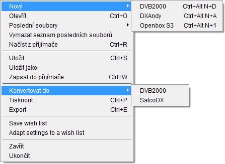 ...a konvertovat do nebo z ostatních formátŭ nastavení či importovat kanály přímo z ostatních formátŭ nastavení do vašeho SetEditS3 nastavení. Mŭžete otevřít několik nastavení najednou.