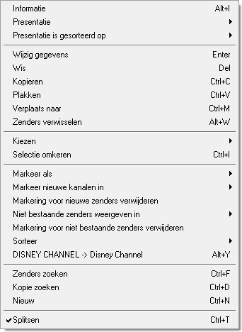 Het hoofmenu van de zenderlijst
