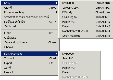 ...a konvertovat do nebo z ostatních formátŭ nastavení či importovat kanály přímo z ostatních formátŭ nastavení do vašeho SetEditSmarty nastavení. Mŭžete otevřít několik nastavení najednou.