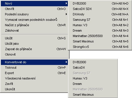 ...a konvertovat do nebo z ostatních formátŭ nastavení či importovat kanály přímo z ostatních formátŭ nastavení do vašeho SetEditStrong4xx5 nastavení. Mŭžete otevřít několik nastavení najednou.
