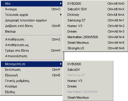 ...μετατροπή από και σε άλλες μορφές ρυθμίσεων (settings formats) ή απευθείας εισαγωγή καναλιών άλλων μορφών στις δικές σας ρυθμίσεις SetEditStrong4xx5. Μπορείτε να επεξεργάζεστε ταυτόχρονα περισσότερες μορφές ρυθμίσεων.