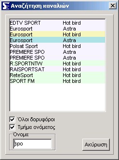 Το κυρίως παράθυρο, εδώ βρίσκονται: δορυφόροι, αναμεταδότες, και φυσικά τα κανάλια.