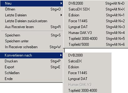 ...von und in andere Settingsformate konvertieren oder direkt Kanäle aus anderen Settingsformaten in Ihre SetEditTF5000 Settings importieren. Sie können mehrere Settingsformate gleichzeitig bearbeiten.