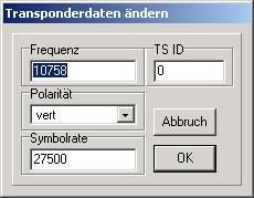 Sie können die Transpondereinstellungen ändern