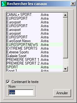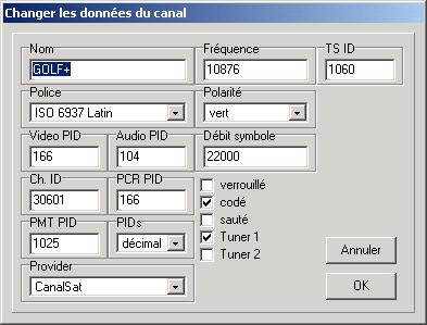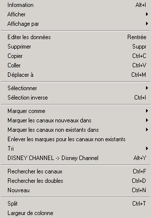 La fentre principale, vous voyez tous les satellites, transpondeurs, providers, FAV, et naturellement les canaux.