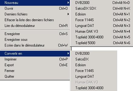 ...et convertir de ou en autres formats de settings ou importer des canaux d'autres formats de settings dans vos settings de SetEditTF5000. Vous pouvez ouvrir plusieurs formats de settings en mme temps.