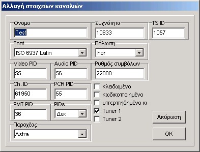 ... και φυσικά τις ρυθμίσεις των καναλιών.