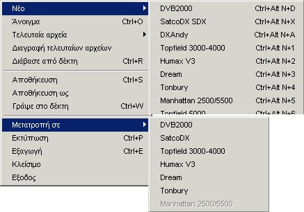 ...μετατροπή από και σε άλλες μορφές ρυθμίσεων (settings formats) ή απευθείας εισαγωγή καναλιών άλλων μορφών στις δικές σας ρυθμίσεις SetEditTF5000. Μπορείτε να επεξεργάζεστε ταυτόχρονα περισσότερες μορφές ρυθμίσεων.