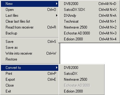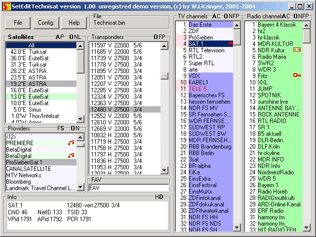 ...and convert in or from other settings formats or import channels directly from other settings formats in your SetEditTechnisat settings. You can open several settings formats at once.