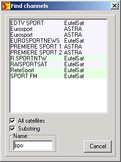 The main window, you see all satellites, transponders, providers, favourites, and of course the channels.