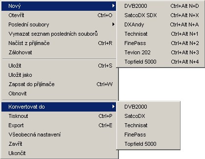 ...a konvertovat do nebo z ostatních formátŭ nastavení či importovat kanály přímo z ostatních formátŭ nastavení do vašeho SetEditTevion nastavení. Mŭžete otevřít několik nastavení najednou.