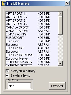 Okno główne, tutaj widzimy wszystkie satelity, transpondery, providery, ulubione, kategorie, i oczywiście kanały.