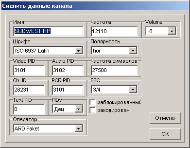 Вы можете изменить установки транспондера