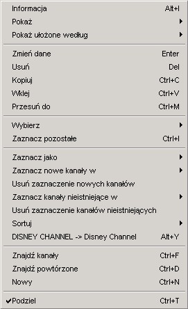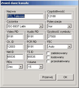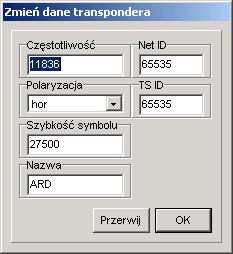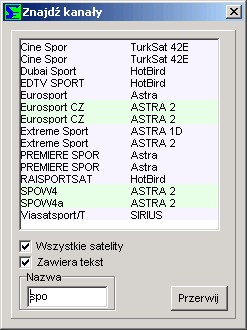 Okno główne, tutaj widzimy wszystkie satelity, transpondery, ulubione, i oczywiście kanały.