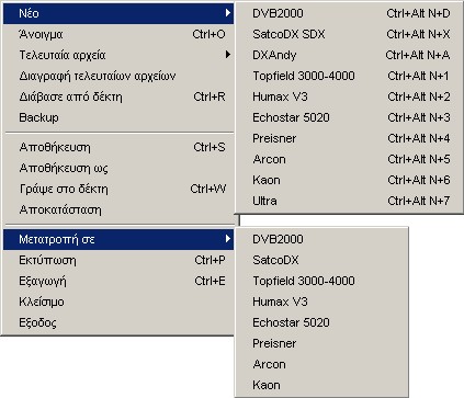 ...μετατροπή από και σε άλλες μορφές ρυθμίσεων (settings formats) ή απευθείας εισαγωγή καναλιών άλλων μορφών στις δικές σας ρυθμίσεις SetEditUltra. Μπορείτε να επεξεργάζεστε ταυτόχρονα περισσότερες μορφές ρυθμίσεων.