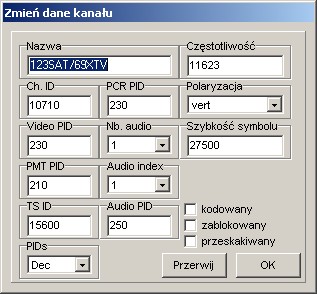 Można zmienić ustawienia transponderów