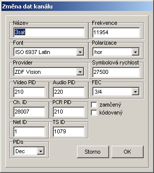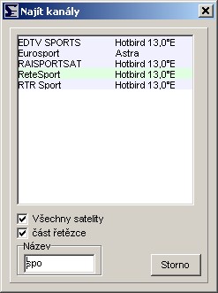 Hlavní okno, zde vidíte všechny satelity, transpondéry, provideri, FAV, a samozřejmě kanály