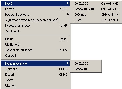 ...a konvertovat do nebo z ostatních formátŭ nastavení či importovat kanály přímo z ostatních formátŭ nastavení do vašeho SetEditXSat nastavení. Mŭžete otevřít několik nastavení najednou.