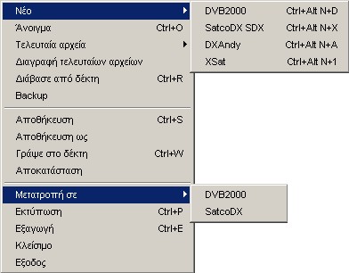 ...μετατροπή από και σε άλλες μορφές ρυθμίσεων (settings formats) ή απευθείας εισαγωγή καναλιών άλλων μορφών στις δικές σας ρυθμίσεις SetEditXSat. Μπορείτε να επεξεργάζεστε ταυτόχρονα περισσότερες μορφές ρυθμίσεων.
