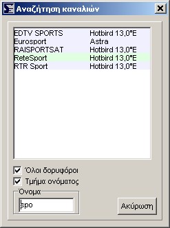 Το κυρίως παράθυρο, εδώ βρίσκονται: δορυφόροι, αναμεταδότες, παροχείς, αγαπημένα, και φυσικά τα κανάλια.
