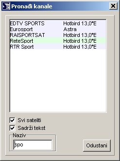 Glavni prozor, vidite sve satelite, transpondere, provajdere, favorite, i svakako kanale