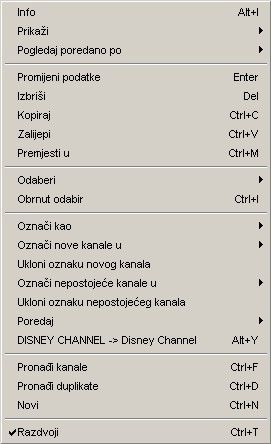Glavni izbornik za listu kanala