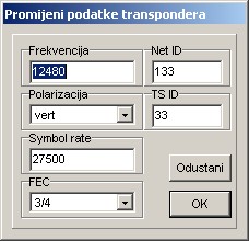 Možete promijeniti podatke za transponder