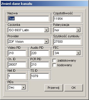 Można zmienić ustawienia transponderów
