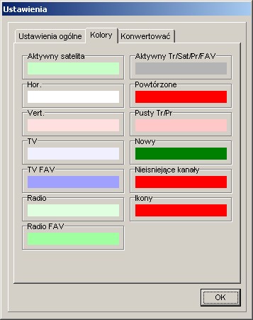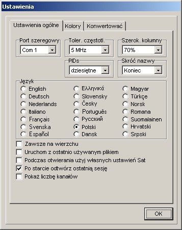 Tutaj możecie wybrać język menu, konfigurację portów, zdecydować czy chcecie widzieć/ wprowadzać PIDs w systemie dziesiętnym, czy szesnastkowym, wprowadzić tolerancję częstotliwości, umieścić okno edytora na wierzchu albo zmienić kolory zaznaczeń na listach.